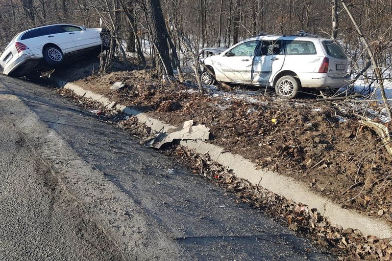 Accident pe drumul care leagă Slatina de Craiova. Maşini proiectate într-o pădure de pe marginea drumului - FOTO