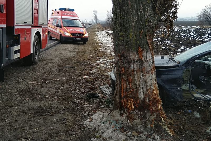 Două persoane au ajuns la spital, sâmbătă, după ce autoturismul în care se aflau a lovit un pom, pe marginea drumului național DN 64, la ieșirea din Caracal spre Dobrosloveni.