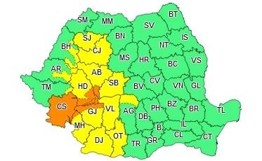 În județul Caraș-Severin și în zona de munte a județelor Mehedinți, Gorj, Alba și Hunedoara vor fi averse torențiale și mai ales prin acumulare, cantitățile de apă vor fi de 30...40 l/mp și izolat de peste 50 l/mp.