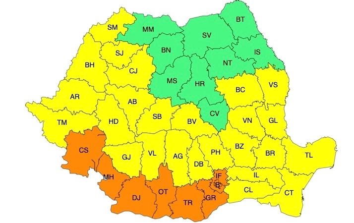 Potrivit meteorologilor, vineri, 2 august, în județele Caraș-Severin, Mehedinți, Dolj, Olt, Teleorman, Giurgiu, Ilfov și municipiul Bucureștivafi caniculă, iar temperaturile maxime vor fi în general de 38...39 de grade. Disconfortul termic va fi accentuat, iar indicele temperatură-umezeală (ITU) va depăși pragul critic de 80 de unități.