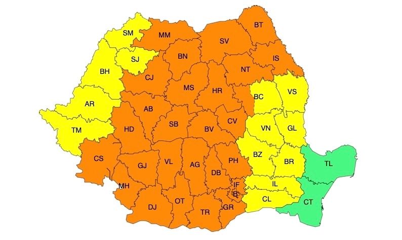 Administrația Națională de Meteorologie (ANM) a emis noi avertizări cod galben și cod portocaliu, în contextul unei schimbări bruște de vreme. Pe parcursul zilei de marți, 2 iulie, canicula va ceda locul unor fenomene meteorologice severe, cu ploi torențiale și vijelii puternice, afectând mare parte din țară. Avertizarea cod portocaliu va fi în vigoare până miercuri dimineața, acoperind majoritatea regiunilor, unde se așteaptă cantități mari de precipitații și intensificări semnificative ale vântului.