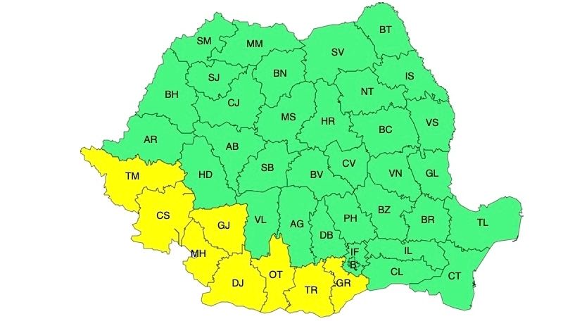 În Banat, cea mai mare parte a Olteniei și în sud-vestul Munteniei se vor înregistra temperaturi deosebit de ridicate pentru această dată, va fi disconfort termic ridicat, iar indicele temperatură-umezeală (ITU) va depăși ușor pragul critic de 80 de unități. Temperaturile maxime vor fi cuprinse între 33 și 36 de grade, cele mai mari valori urmând a se înregistra izolat în Banat și sud-vestul Olteniei.