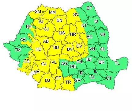 INFORMARE METEOROLOGICĂInterval de valabilitate: 06 mai, ora 13:30 – 07 mai, ora 21:00 Fenomene vizate: intensificări ale vântului, ploi moderate cantitativ și precipitații mixte la munteÎn intervalul menționat, în cea mai mare parte a țării temporar vor fi intensificări ale vântului, cu viteze la rafală în general de peste 45...55 km/h. La munte rafalele vor depăși 60...70 km/h și se vor semnala precipitații mixte.Local și temporar în nord, centru, est și sud-est va ploua moderat cantitativ și vor fi perioade cu manifestări de instabilitate atmosferică (averse ce pot avea și caracter torențial și descărcări electrice). În intervale scurte de timp sau prin acumulare, cantitățile de apă vor depăși 15...25 l/mp și punctiform 30 l/mp.ATENȚIONARE METEOROLOGICĂCOD GALBEN Interval de valabilitate: 06 mai, ora 13:30 - 06 mai, ora 21:00 Zone și fenomene vizate: în zona montană înaltă, intensificări ale vântului și viscolÎn intervalul menționat, în zona montană înaltă, vântul va avea intensificări cu rafale de peste 90...100 km/h.Temporar, la altitudini de peste 1700 m, se vor semnala precipitații predominant sub formă de ninsoare și local va fi viscol.COD GALBENInterval de valabilitate: 06 mai, ora 13:30 - 06 mai, ora 21:00 Zone vizate: Maramureș, Transilvania, Oltenia, sud-vestul Munteniei Fenomene vizate: intensificări ale vântuluiÎn Maramureș, Transilvania, Oltenia și sud-vestul Munteniei, local și temporar vor fi intensificări ale vântului cu viteze la rafală ce vor depăși în general 55...65 km/h.