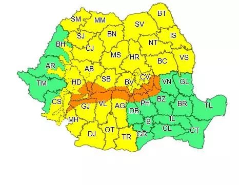 Administrația Națională de Meteorologie a emis mai multe atenționări cod portocaliu și cod galben de vreme rea, valabile pentru mai multe zone din țară.