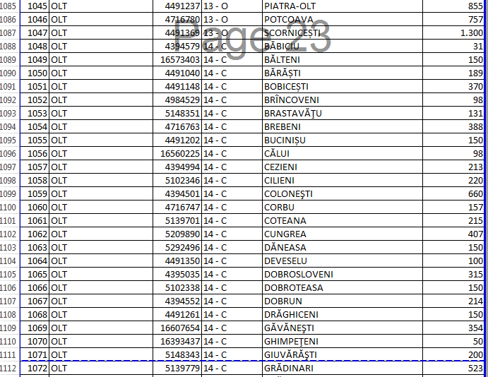 Cele mai mari sume au fost alocate orașelor și municipiilor din județ, primăriile din aceste comunități având și cele mai mare cheltuieli, în special cu plata indemnizațiilor și salariilor persoanelor cu handicap și însoțitorilor. Astfel, Primăria Slatina va primi aproximativ 3,7 milioane lei, cea din Corabia 2,65 milioane, iar Drăgănești-Olt ajung 2,55 milioane. Sume de aproximativ 2 milioane de lei vor intra și în conturile primăriilor din Caracal și Balș. Ministrul Finanțelor, Eugen Teodorovici, a explicat care au fost criteriile de împărțire a banilor. „Practic sumele avute în conturile UAT-urilor cu ce se alocă asigură funcționarea până la finalul acestui an și desigur și cheltuielile după acest moment. Nicio comună să nu aibă sub trei luni de funcționare, chiar dacă acestea nu au solicitat Ministerului Finanțelor Publice aceste sume. Practic e o echilibrare pentru zona de comune, indiferent de culoarea politică a unor primari care administrează comunitățile locale”, a declarat ministrul de Finanțelor, Eugen Teodorovici.Iată lista completă a localităților, cu sumele primite de fiecare: (cifrele înscrise în tabel sunt exprimate în mii de lei)