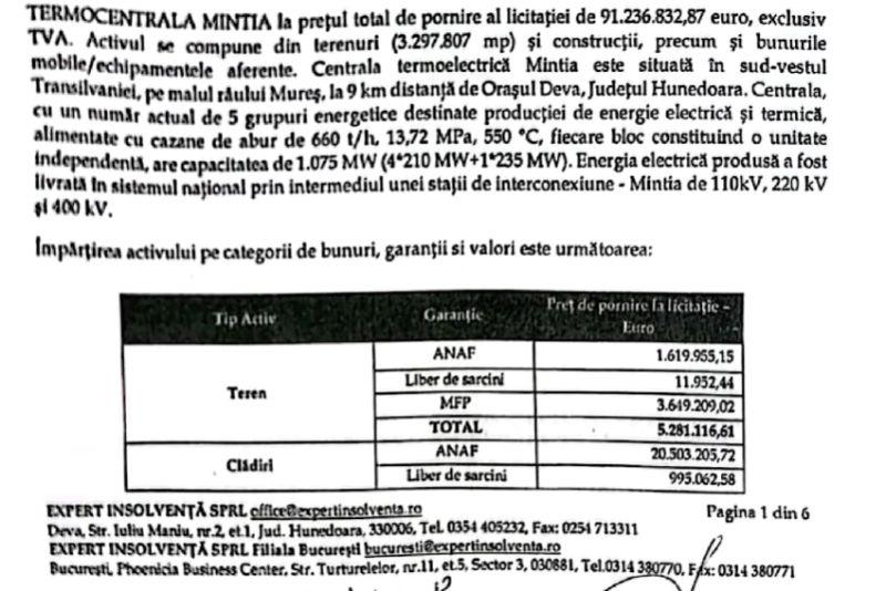 Procesul verbal de licitație pentru Termocentrala Mintia a fost prezentat și dezbătut, cu lux de amănunte