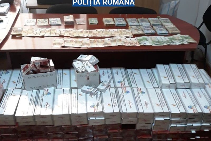 Importante sume de bani, găsite de poliţişti la locuinţele unor contrabandişti de ţigări din Olt - FOTO