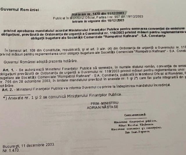 Sursă: Memorandum privatizare Petromidia - Realitatea PLUS/Culisele statului paralel