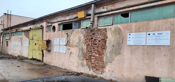 Panouri cu celelalte firme se află pe o clădire dărăpănată: Gabos Servicii SRL, Corina Plast, București, Astor Com, Tg Mureș, Remart Ardeal, Medias, Andaluzia SRL, Alba Iulia, sunt doar o mică parte dintre ele.
