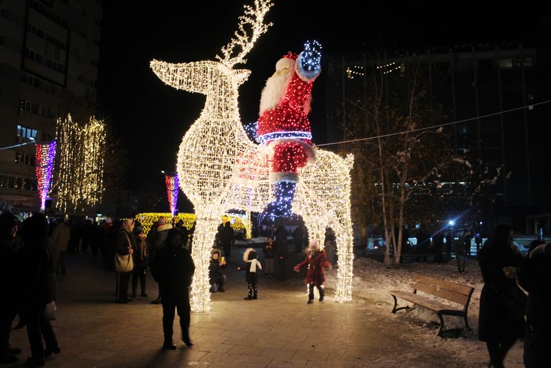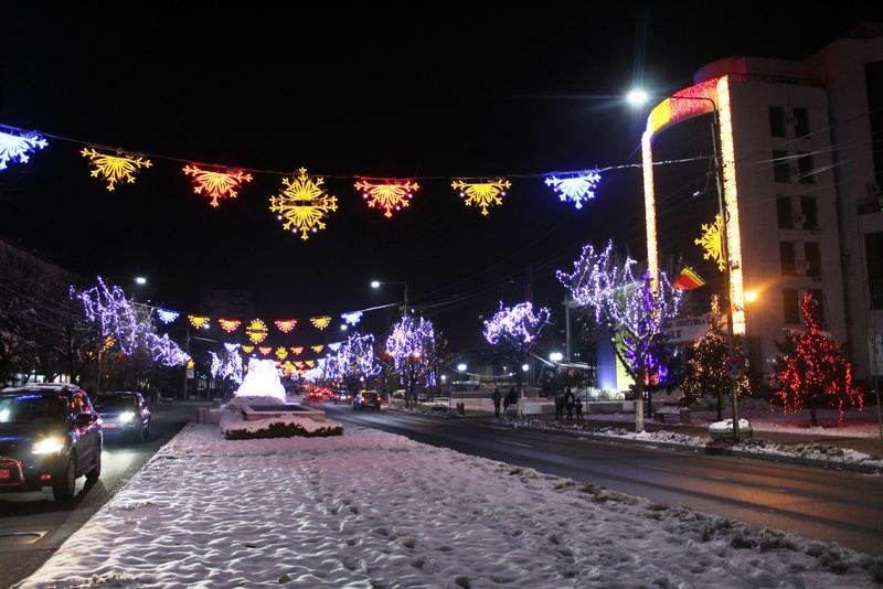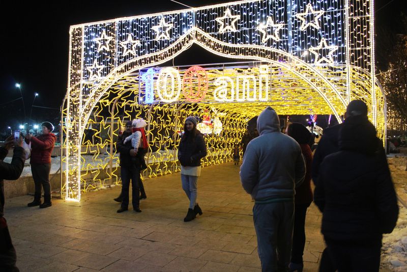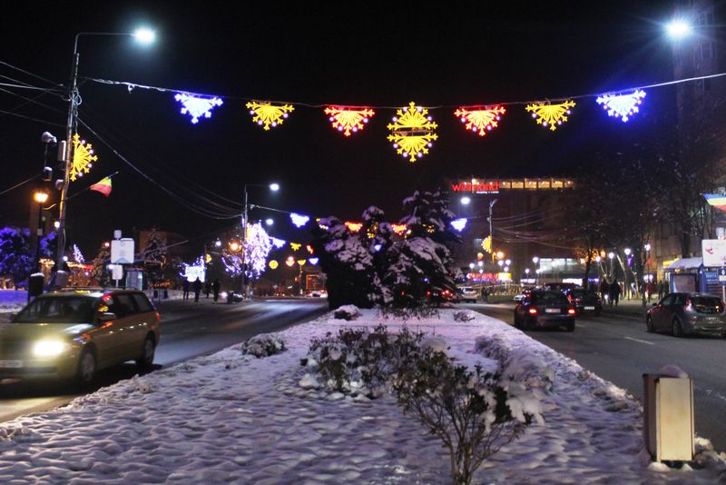La Slatina, iluminatul de Sărbători este în culorile tricolorului - FOTOGALERIE