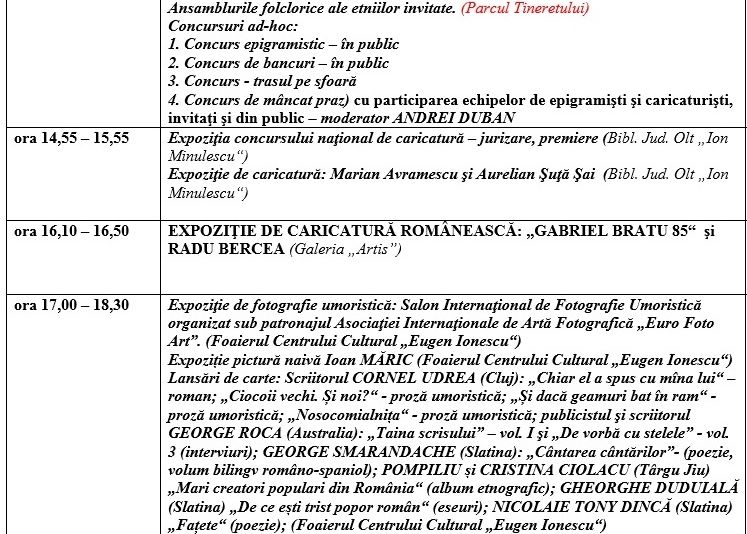 Podul Olt se transformă mâine în vamă oltenească pentru toți cei care iubesc umorul de calitate, distracția și bucatele tradiționale. Începe festivalul „Oltenii & Restu’ lumii”, o ediție jubiliară care îl are ca invitat special pe actorul Silviu Biriș. Toma Cuzin și Liliana Mocanu, carismaticii actori din Las Fierbinți vor interpreta o scenetă, în deschiderea festivalului.De la ora 12.00, voia bună se mută în parcul Tineretului, care va fi gazda festivalului până duminică seara. Programul complet: