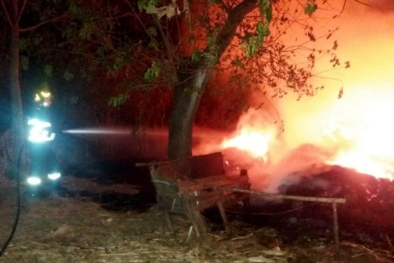 Pagubă pentru un fermier din Olt. 20 de tone de furaje, distruse într-un incendiu provocat intenţionat - FOTO&VIDEO