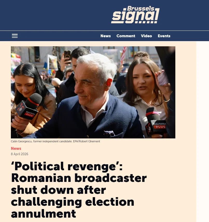 Unui post de știri din România, care a contestat în repetate rânduri anularea alegerilor prezidențiale de anul trecut și l-a susținut pe candidatul Călin Georgescu, i-a fost retrasă licența de emisie pe un motiv destul de slab. În țară se vorbește despre cenzură și „răzbunare politică”, scrie Brussels Signal.