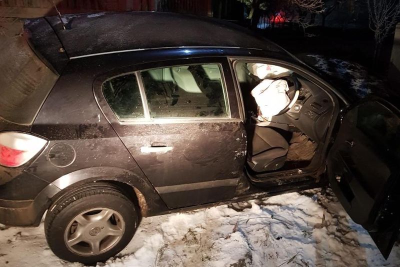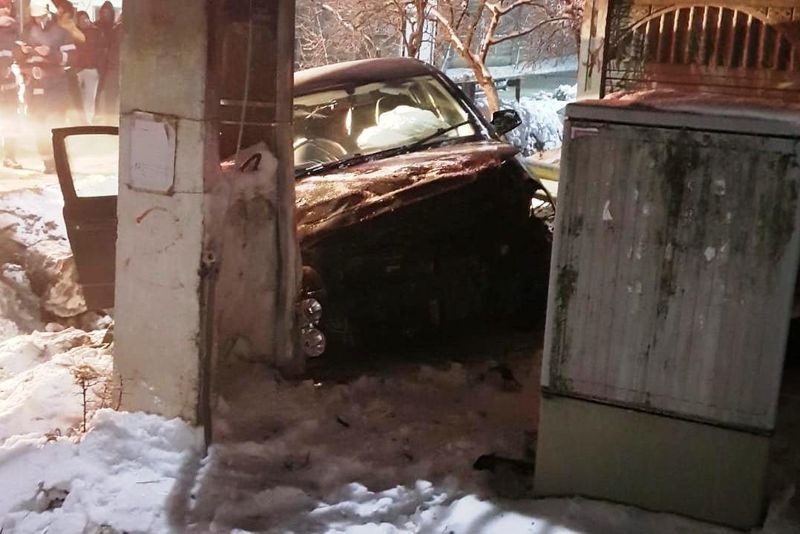 S-a îmbătat şi a intrat cu maşina într-un stâlp de electricitate - FOTO