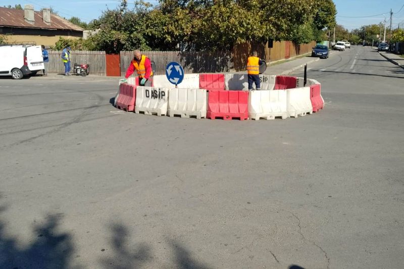 Muncitorii Direcţiei Administrarea Străzilor şi Iluminat Public (DASIP) Slatina au amenajat, joi, un sens giratoriu la intersecţia străzilor Banului şi Mănăstirii, în cartierul Clocociov.