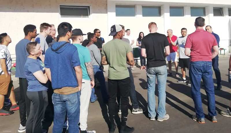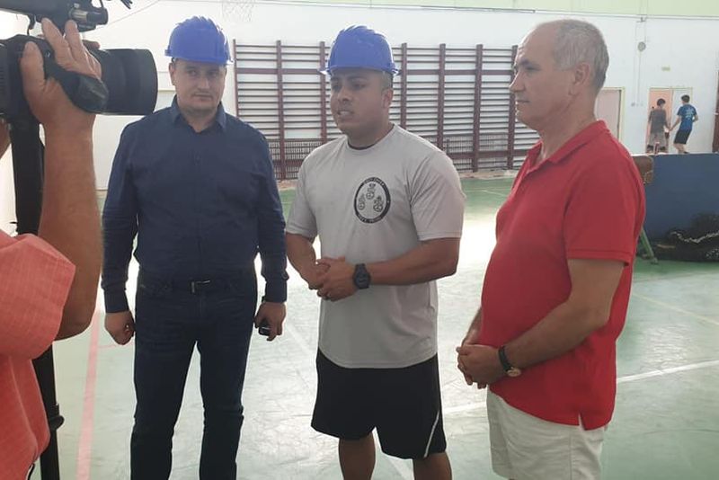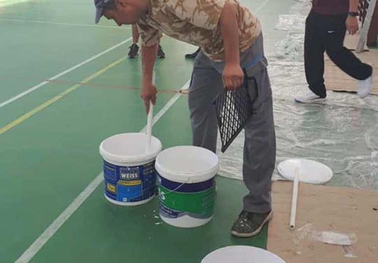 Soldaţii americani au vopsit parchetul sălii de sport a unui liceul din Caracal | FOTO