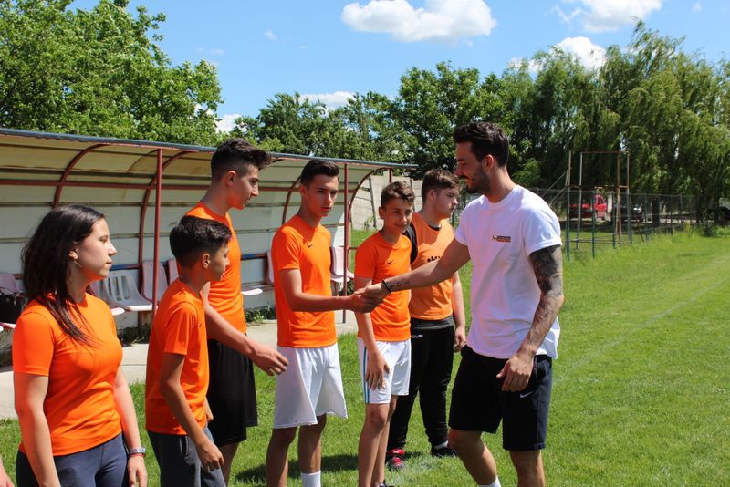 Portarul Borussiei Dortmund a jucat fotbal cu copiii din Piatra Olt - VIDEO